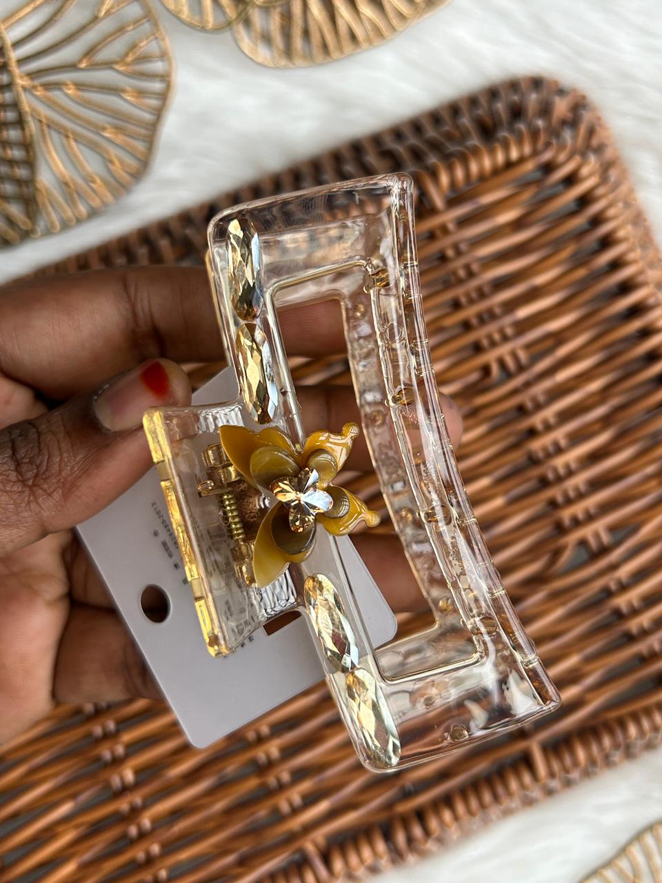 Enhance your hairstyle with this chic transparent hair claw clip, crafted from premium clear acrylic for a modern, glossy look. The sleek rectangular design is beautifully accented with iridescent crystal stones and a delicate butterfly motif at the center, adding a subtle touch of sparkle and elegance. Featuring a strong metal spring, this clip offers a secure and comfortable grip, making it perfect for everyday styling, workwear, or special occasions. A versatile accessory that effortlessly complements both casual and dressy outfits.