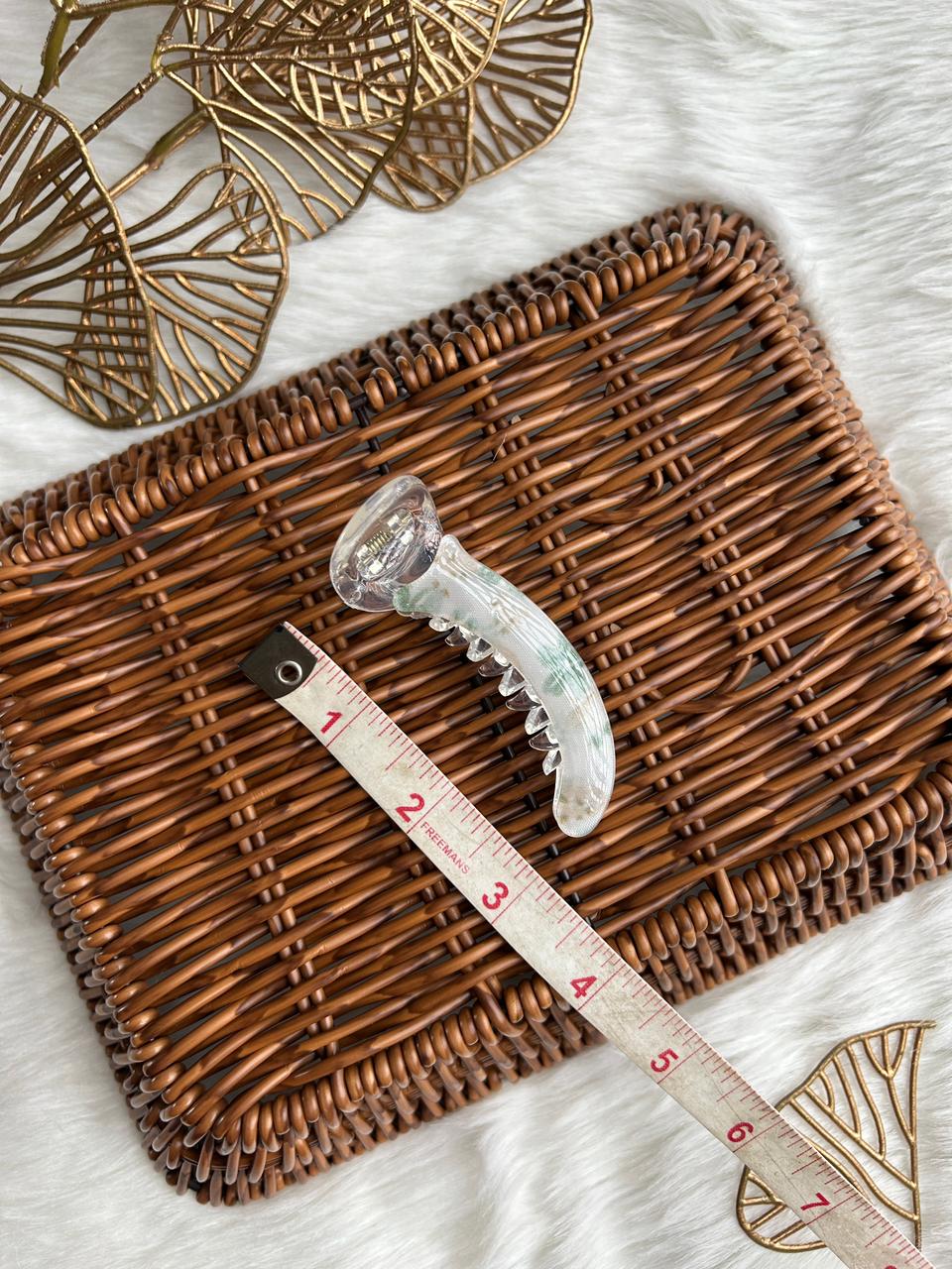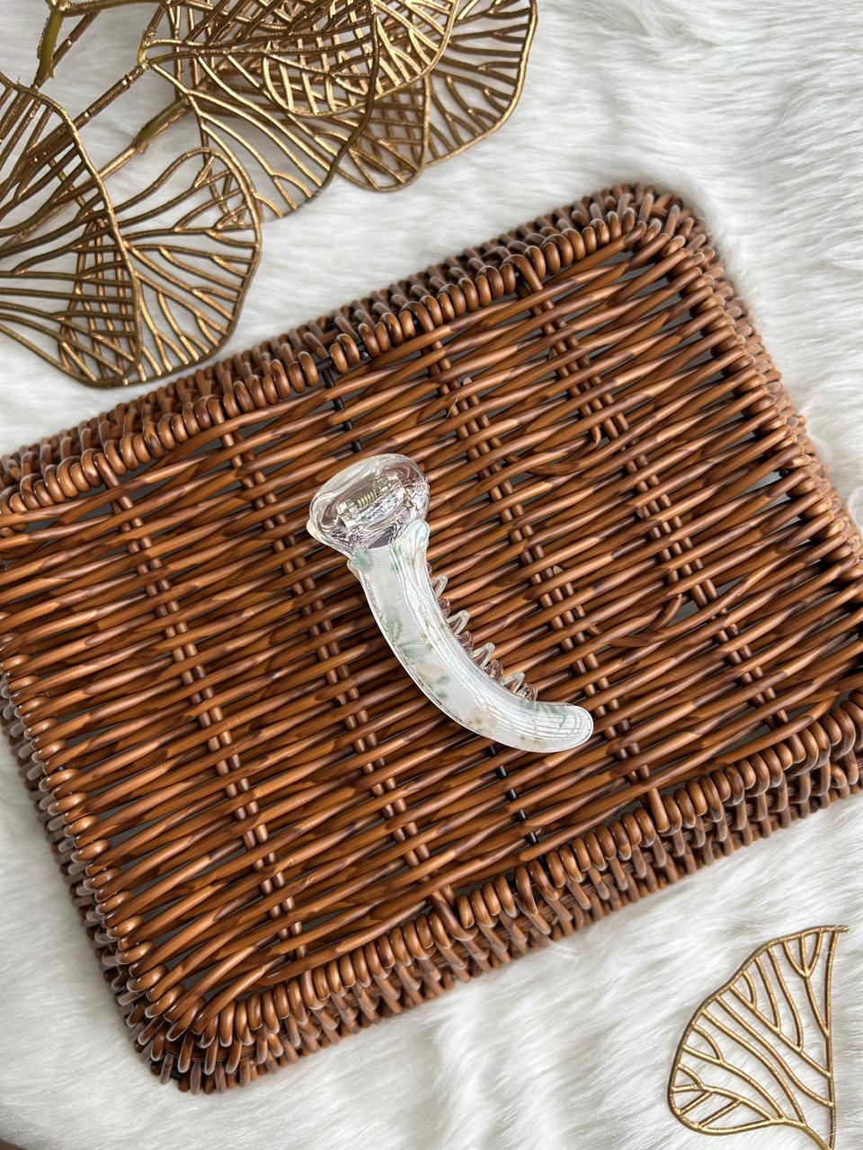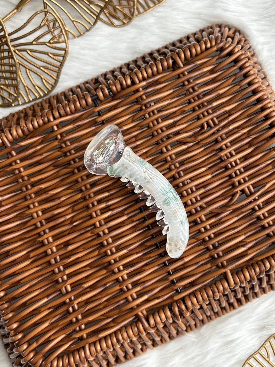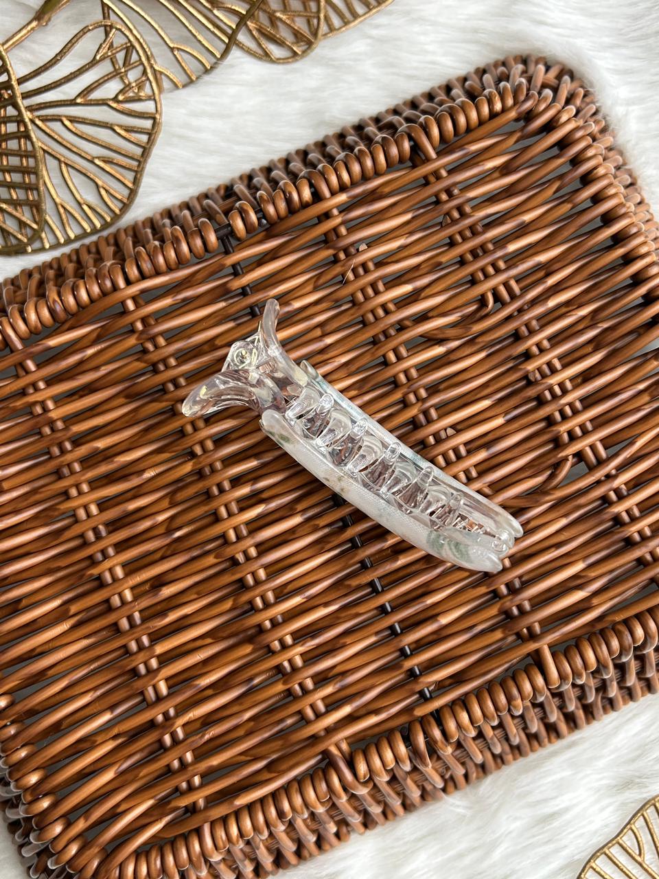 :Grace your hair with subtle luxury using this translucent banana hair clip. Designed with a soft pearl-clear finish and delicate blush accents, it offers a refined, feminine charm. Lightweight yet secure, it’s perfect for effortless everyday elegance and polished styling.