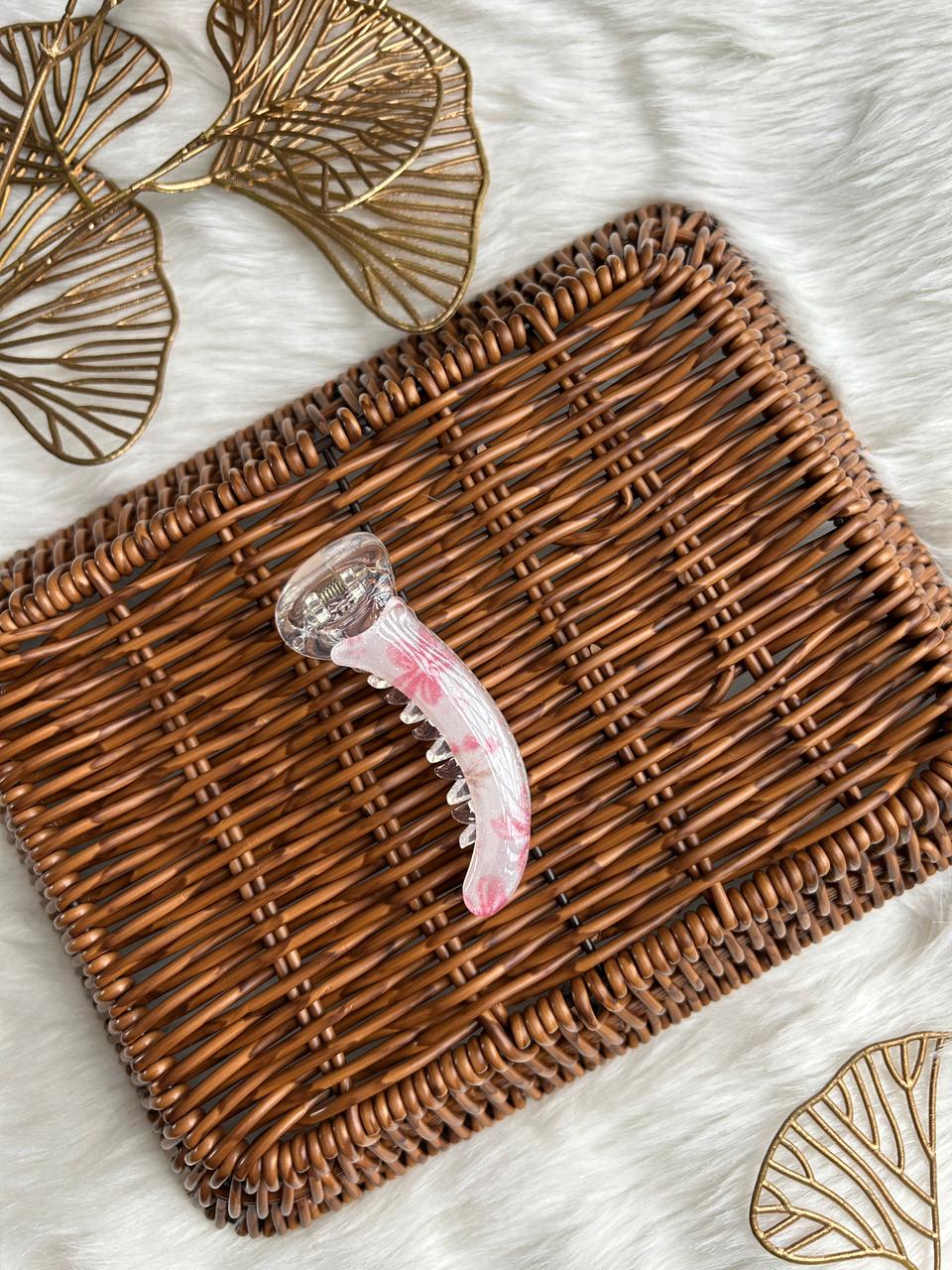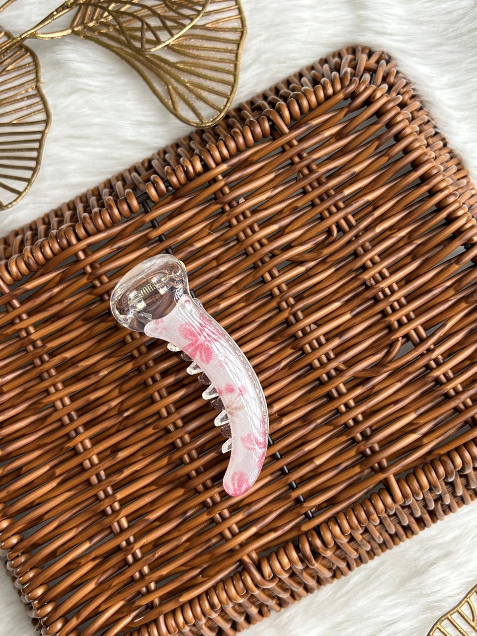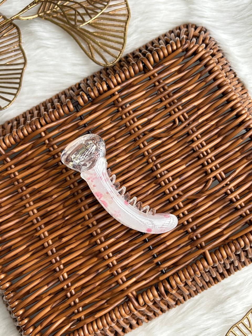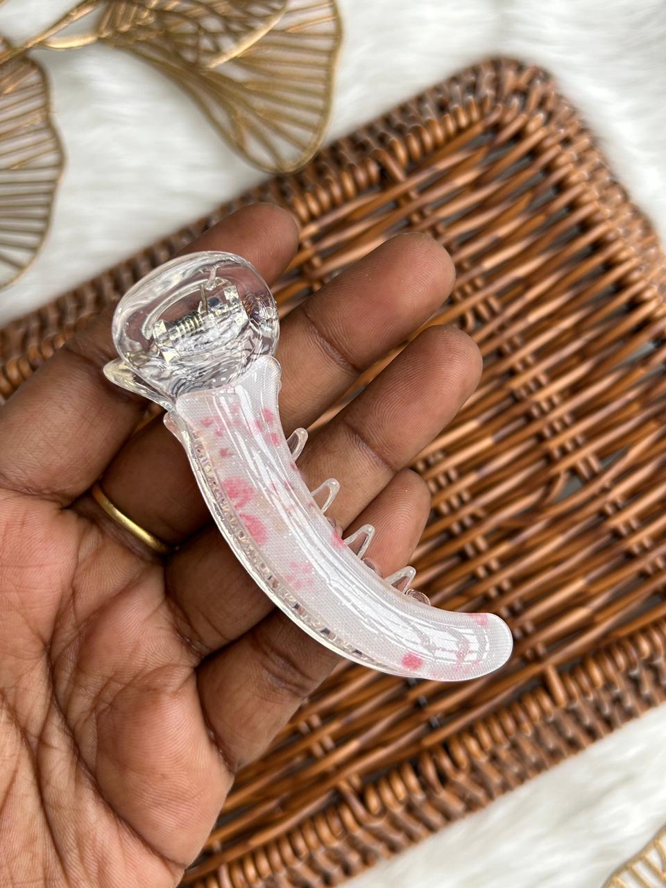 :Grace your hair with subtle luxury using this translucent banana hair clip. Designed with a soft pearl-clear finish and delicate blush accents, it offers a refined, feminine charm. Lightweight yet secure, it’s perfect for effortless everyday elegance and polished styling.