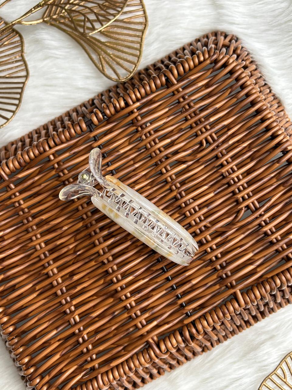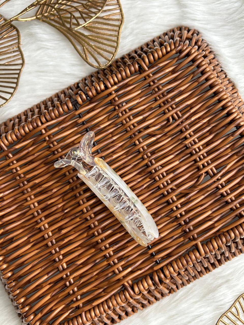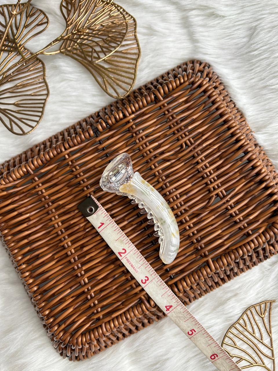 :Grace your hair with subtle luxury using this translucent banana hair clip. Designed with a soft pearl-clear finish and delicate blush accents, it offers a refined, feminine charm. Lightweight yet secure, it’s perfect for effortless everyday elegance and polished styling.