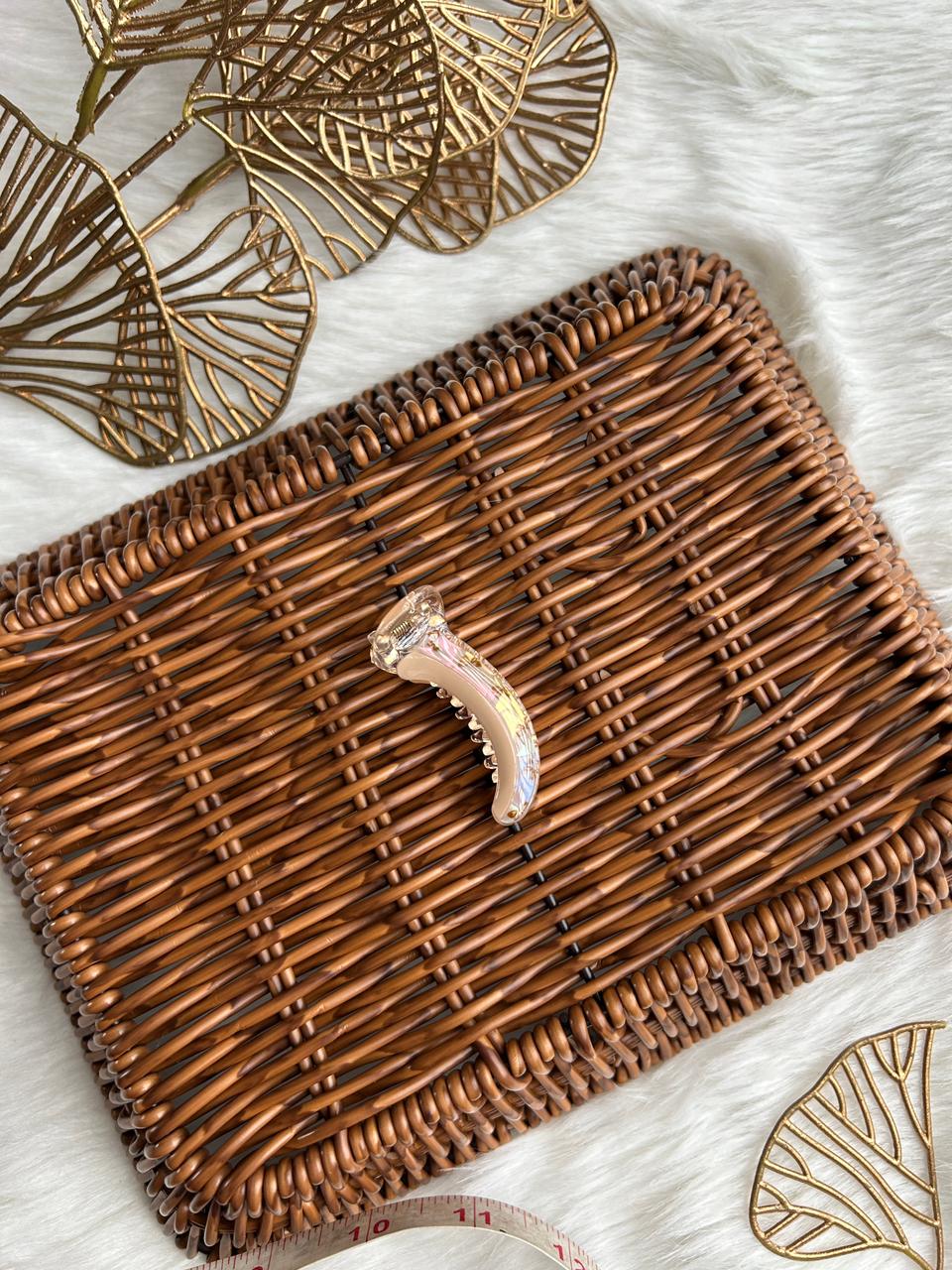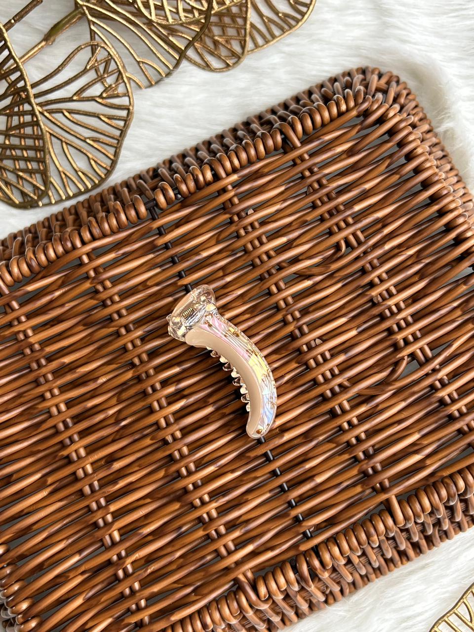 :Grace your hair with subtle luxury using this translucent banana hair clip. Designed with a soft pearl-clear finish and delicate blush accents, it offers a refined, feminine charm. Lightweight yet secure, it’s perfect for effortless everyday elegance and polished styling.
