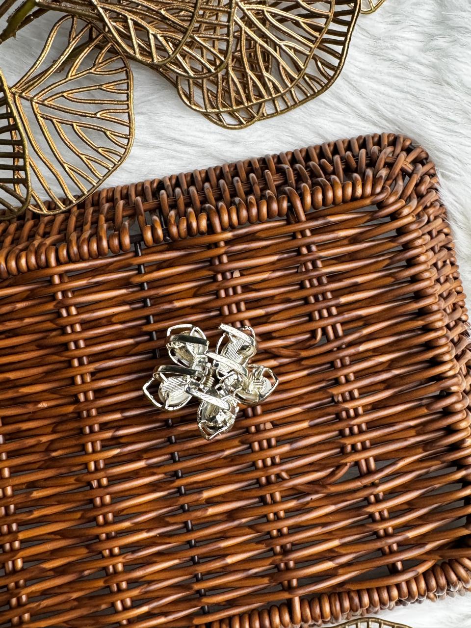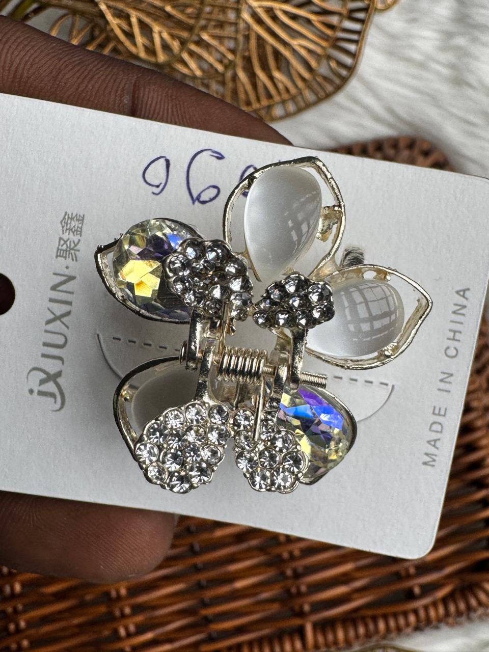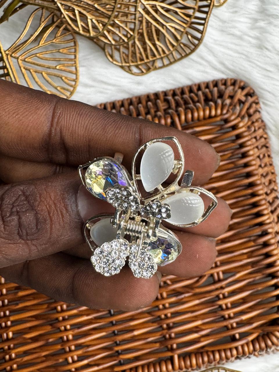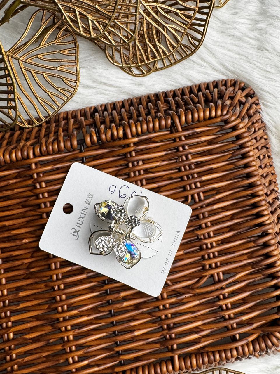 Add a touch of luxury to your hairstyle with this stunning designer hair clip. Crafted with shimmering crystals, soft grey floral stones, and classic pearl accents on a sleek silver base, this clip brings effortless elegance to any look. Perfect for weddings, parties, festive occasions, or elevating your everyday style.