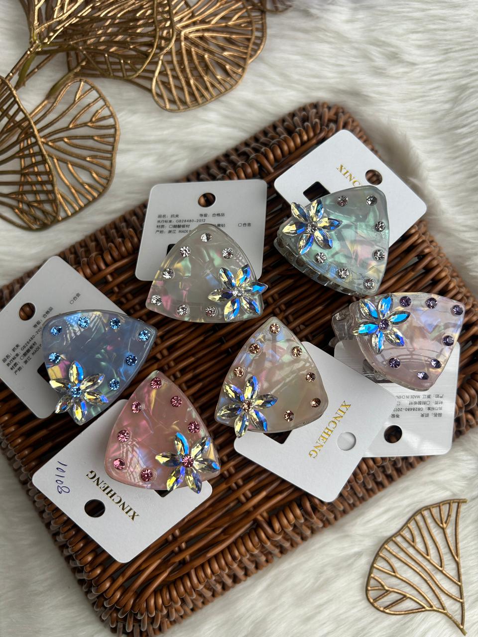 IRIDESCENT FLORAL CRYSTAL HAIR CLIP-NPTC1